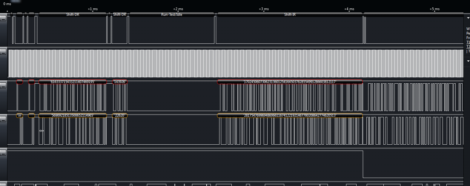JTAG (Joint Test Action Group) is often used to program and debug microcontrollers, embedded systems, FPGAs, and much more. It has a wide range of capabilities and is supported by a large amount of hardware. It’s extremely flexible and can be used for many other purposes. When using the JTAG analyzer, make sure you are sampling at least 4 times faster than the clock speed to accurately capture the data.
