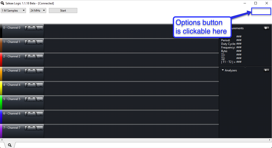 - Disable the aero theme option in the Saleae software.