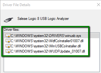 These four drivers are part of the WinUSB driver, which all Saleae devices use on all versions of Windows. Note that 4 files are listed - if not all 4 drivers are listed, that’s OK.